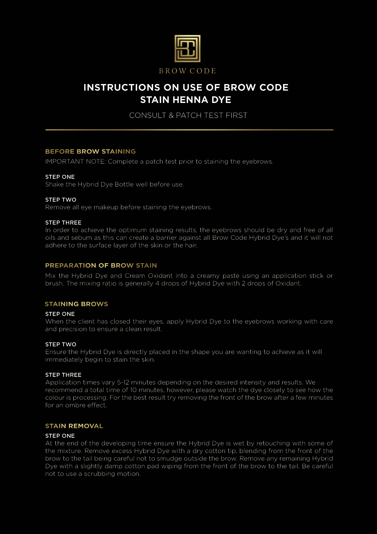 Important Note: Complete a patch test prior to staining the eyebrows.