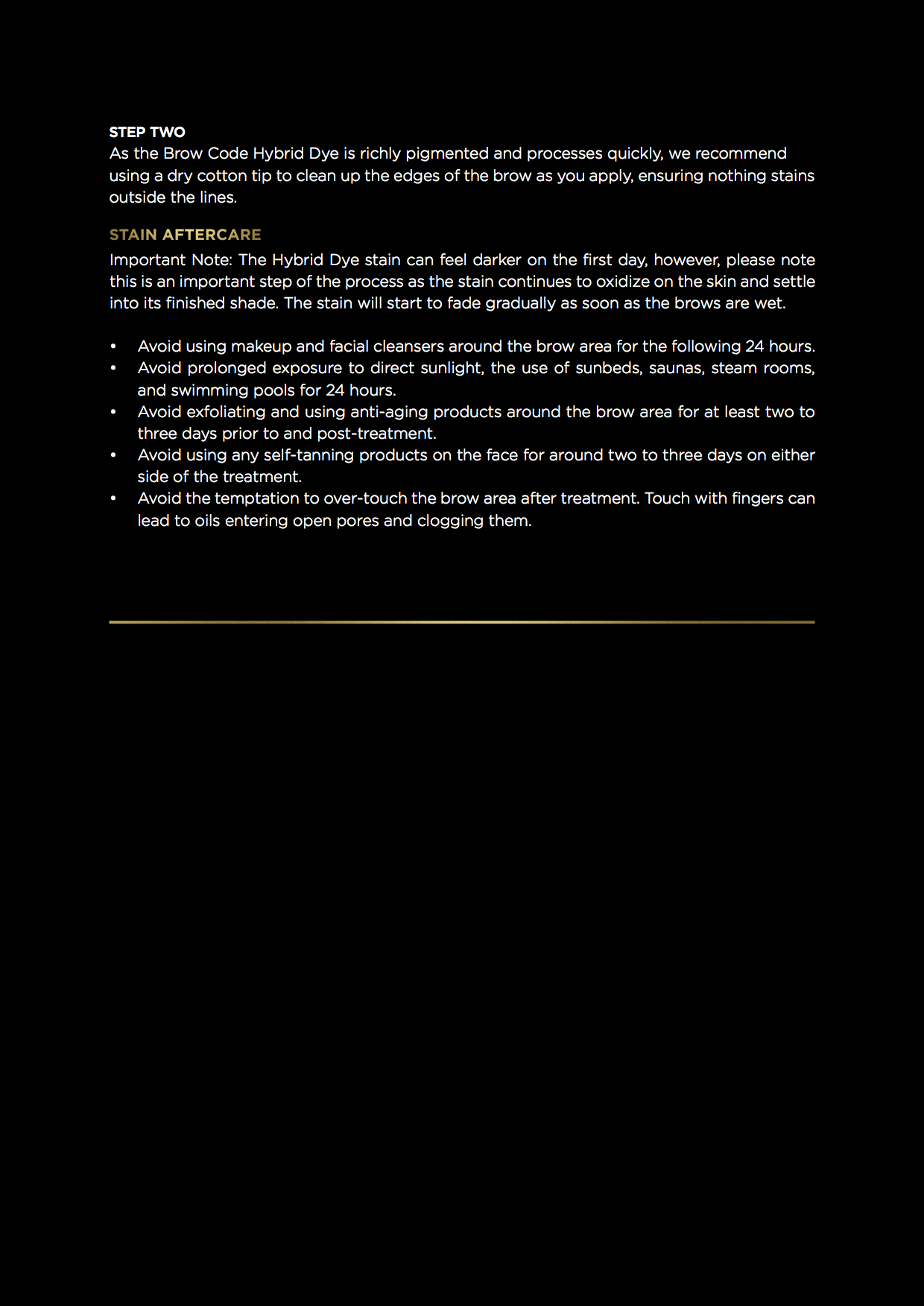 Important Note: The Hybrid Dye stain can feel darker on the first day, however, please note this is an important step of the process as the stain continues to oxidise on the skin and settle into its finished shade. The stain will start to fade gradually as soon as the brows are wet.