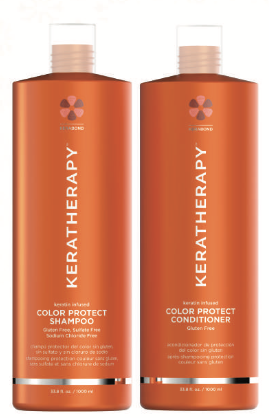 Keratin Infused Color Protect Shampoo is uniquely formulated to extend the life of color-treated and high lighted hair while gently removing residue buildup that causes hair to become dul land lifeless.Formulated with cold pressed red raspberry seed oil, a powerful antioxidant rich in omega 3 and 6 essentiallatty acids, that helps to preserve hair color and protect against harmful UV rays and other environmental damage.